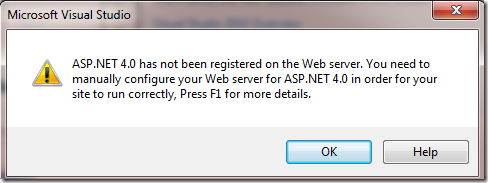 click Ok, if you get the error says asp.net 4.0 is not configurated for IIS.